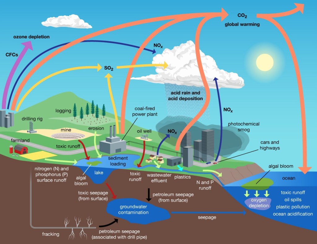 Land pollution touches essentially every area of the living world, including:
